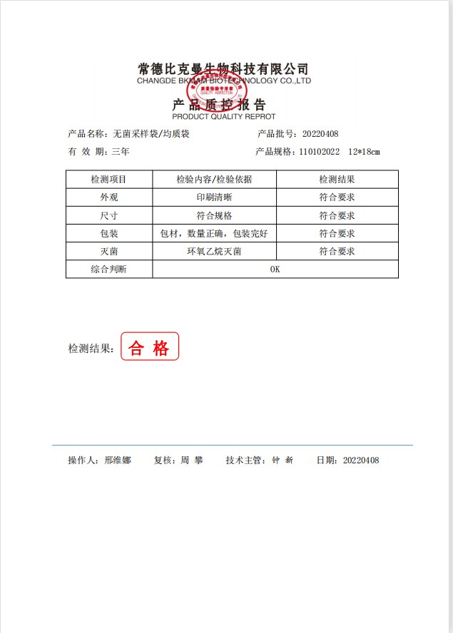 無菌采樣袋 12x18 (帶壓條) 100個(gè)裝 110102022 20220408