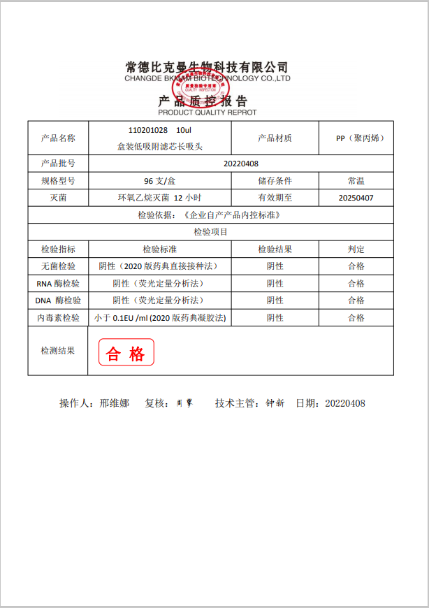 盒裝濾芯吸頭 10ul 盒裝低吸附濾芯長吸頭 96支裝 110201028 20220408
