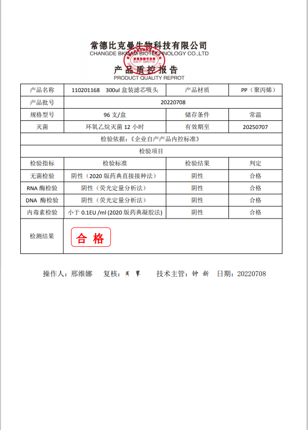 盒裝濾芯吸頭 300ul 盒裝濾芯吸頭 96支裝 110201168 20220708
