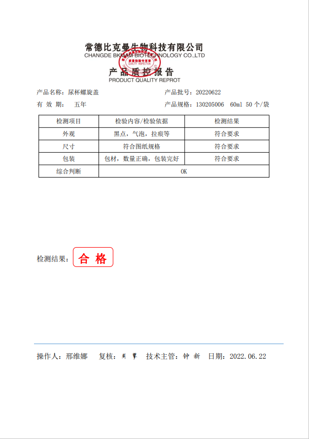 BKMAM 尿杯螺旋蓋 60ml 130205006 50個袋 20220622