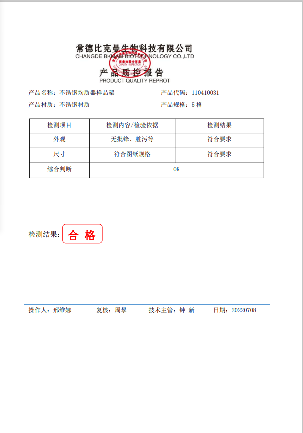 比克曼生物 不銹鋼均質(zhì)器樣品架 5格 110410031 20220708