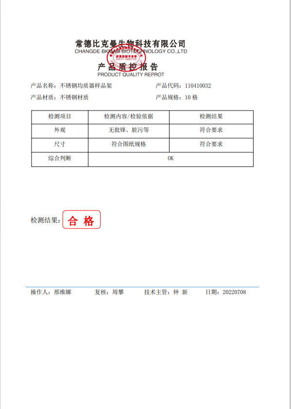比克曼生物 不銹鋼均質(zhì)器樣品架 10格 110410032 20220708