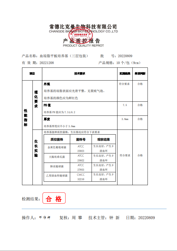 比克曼生物 血瓊脂平板培養(yǎng)基 (三層包裝)9cm 10個袋 110704011 20220809