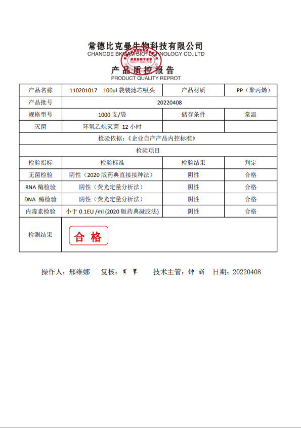 袋裝濾芯吸頭 100ul 袋裝濾芯吸頭 1000支裝 110201017 20220408