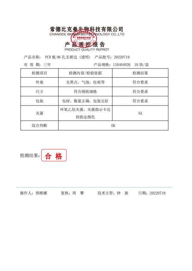 PCR板96孔無裙邊 (透明) 0.1ml 10塊盒 110404026 20220719