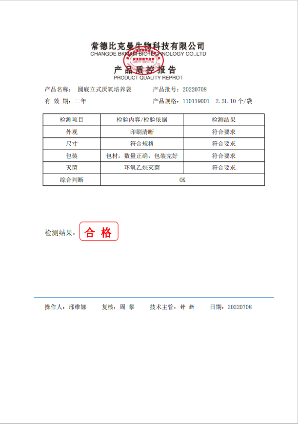 比克曼生物 2.5L圓底立式厭氧培養(yǎng)袋 10個袋 110119001 20220708