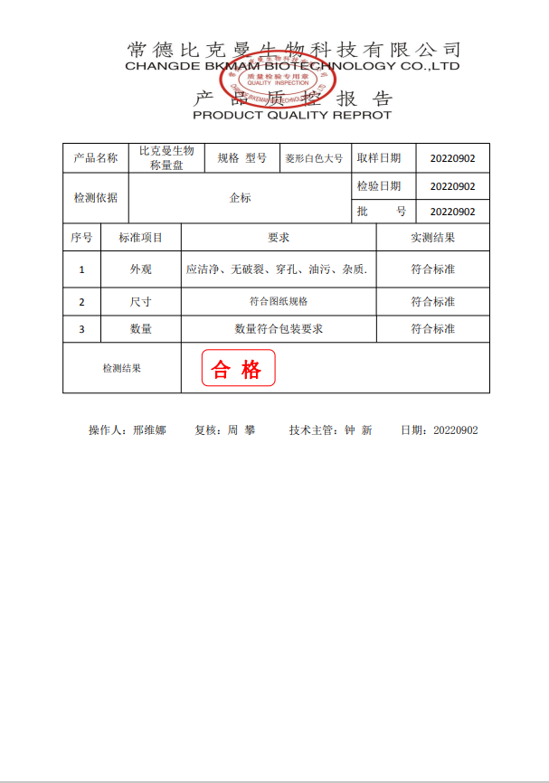比克曼生物 塑料稱量盤 菱形白色大號 110406013 20220902