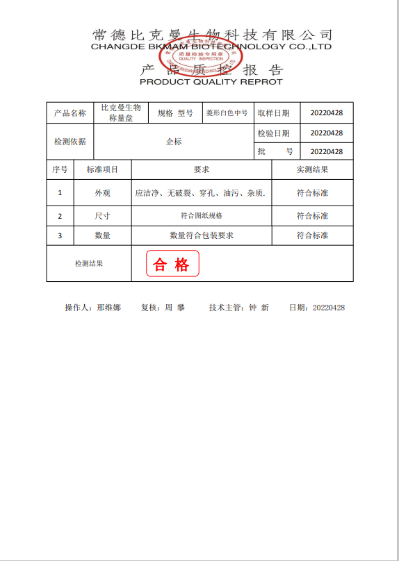 比克曼生物 塑料稱量盤 菱形白色中號 110406005 20220428