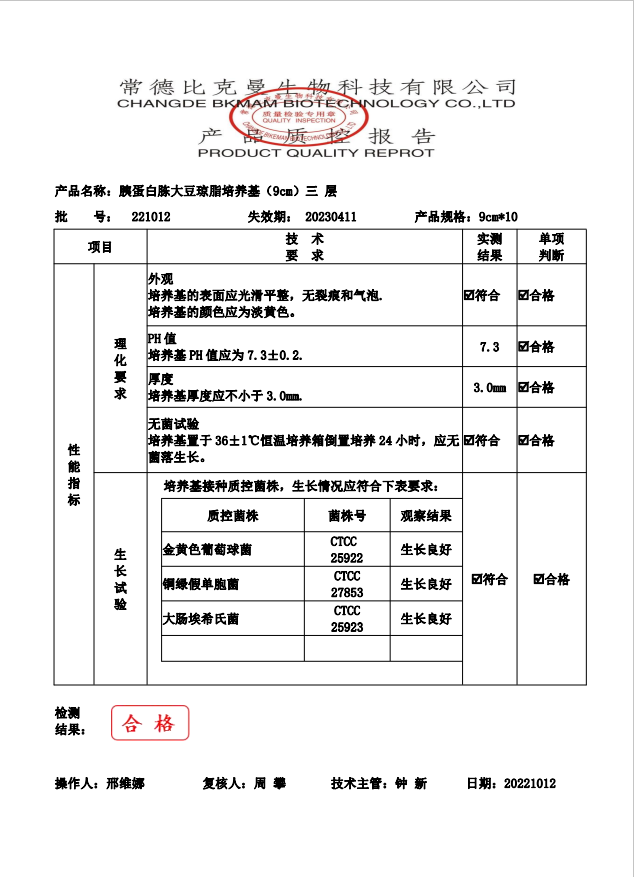 比克曼生物 胰蛋白胨大豆瓊脂(三層包裝) TSA瓊脂平板 9cm 10個袋 110704022 221012