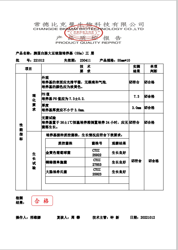 比克曼生物 胰蛋白胨大豆瓊脂(三層包裝) TSA瓊脂平板 55mm 10個袋 110704013 221012