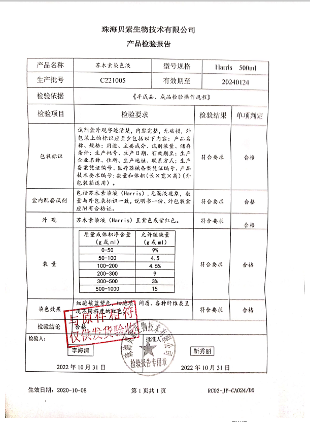 貝索 蘇木素染色液 Harris 500ml BA4097 C221005