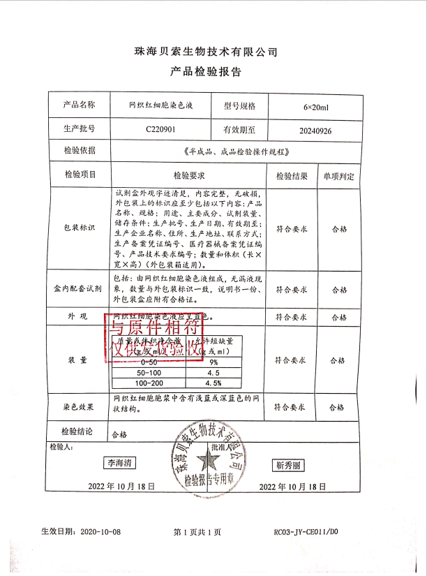 貝索 網(wǎng)織紅細(xì)胞染色液 6x20ml BA4004 C220901