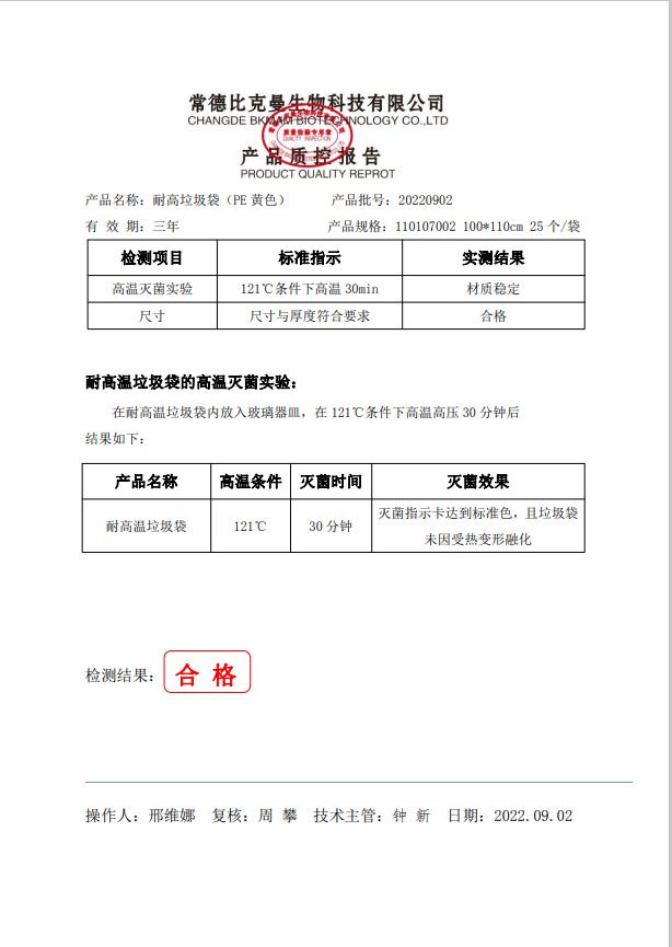 110107002 耐高溫垃圾袋 黃色 100x110cm (PE復(fù)合膜材質(zhì)) 25個(gè)袋 20220902