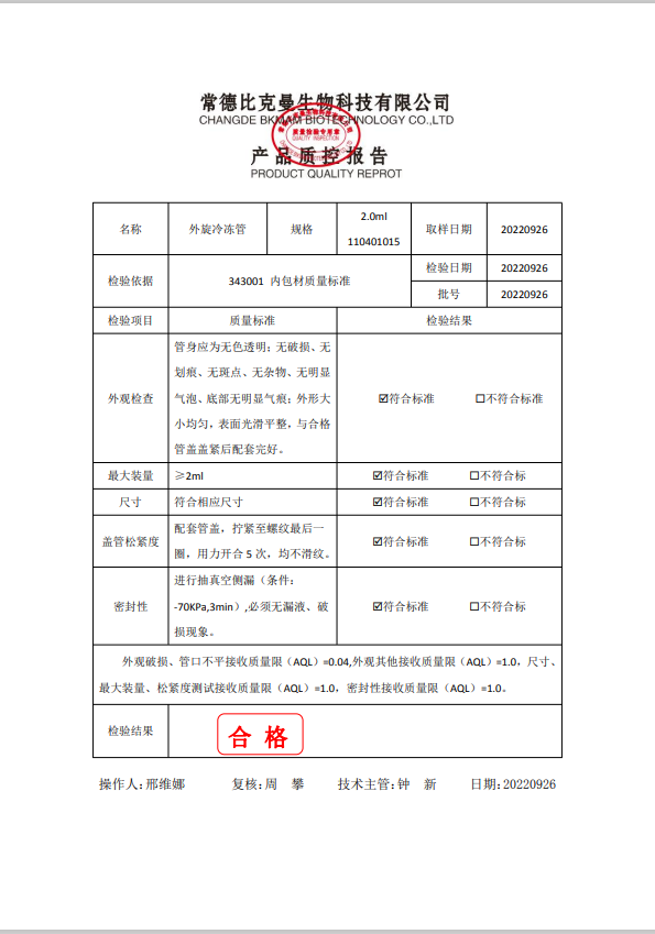110401015 外旋冷凍管 (凍存管) 2.0ml 100個(gè)袋 20220926