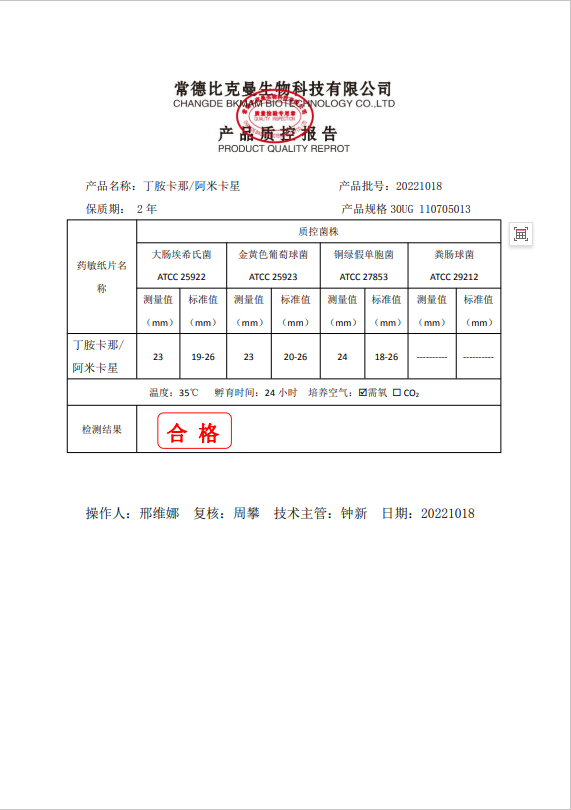 110705013 阿米卡星 30UG 20片瓶 20221018
