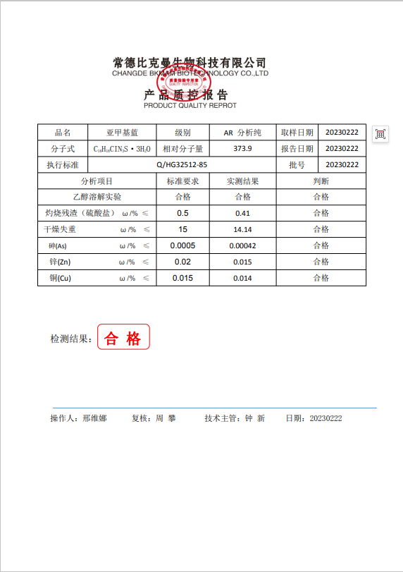 110702059 比克曼生物 亞甲基藍(lán) AR分析純 25g 20230222