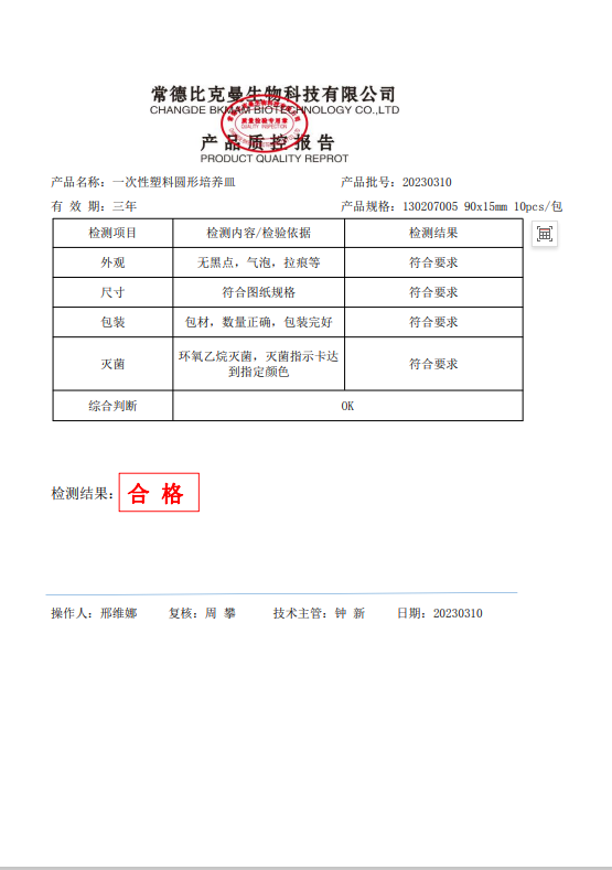 130207005 BKMAM 一次性塑料圓形培養(yǎng)皿 90x15mm 10個袋 20230310