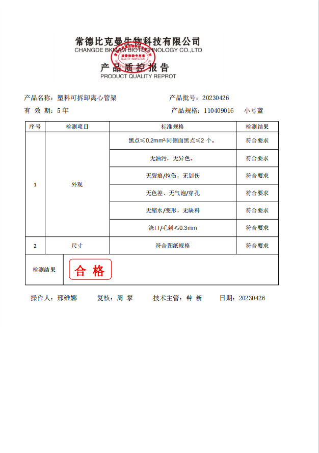 110409016 bkmamlab 塑料可拆卸離心管架 小號藍 100個箱 20230426