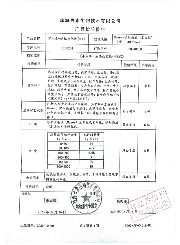 貝索 蘇木素-伊紅染色液(H-E) Mayer-伊紅染液(水溶性)I 型 4x250ml BA4027 C230201