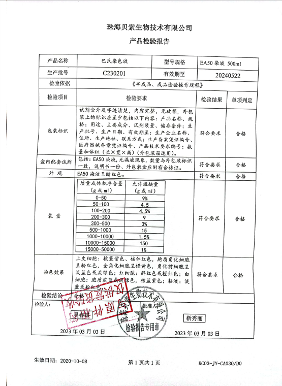 貝索 巴氏染色液 EA-50 500ml BA4033A C230201