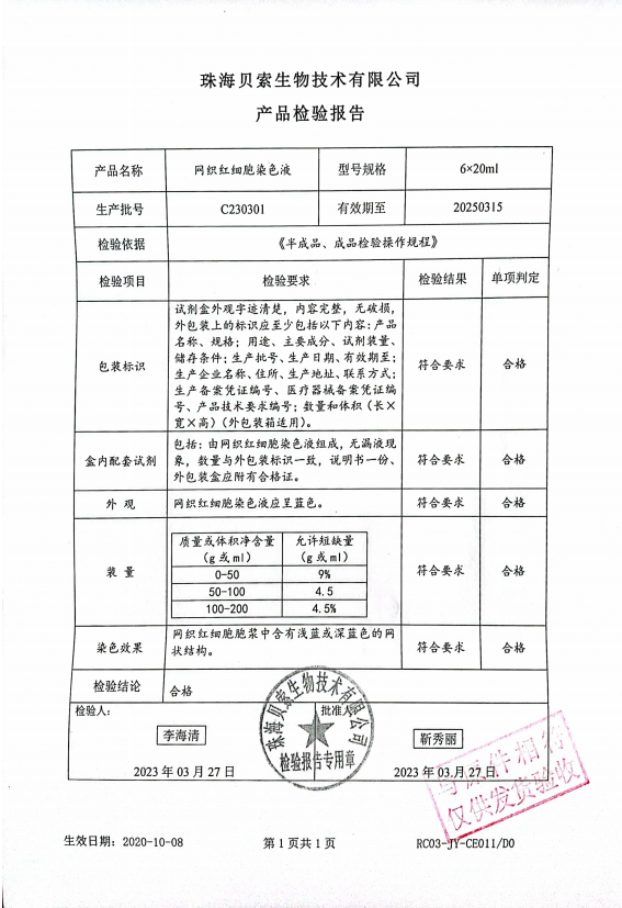 貝索 網織紅細胞染色液 6x20ml BA4004 C230301