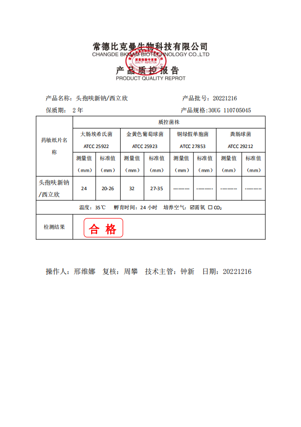 110705045 比克曼生物 頭孢呋新鈉 30UG 20片瓶 20221216