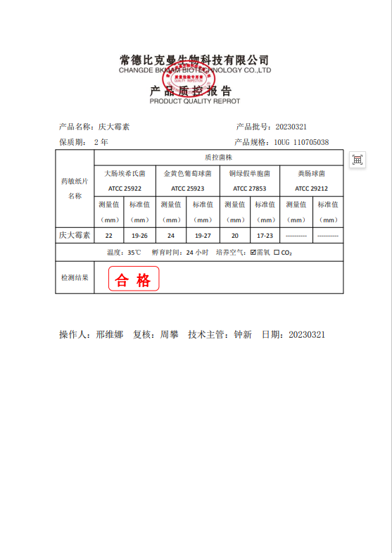 110705038 比克曼生物 慶大霉素 10UG 20片瓶 20230321
