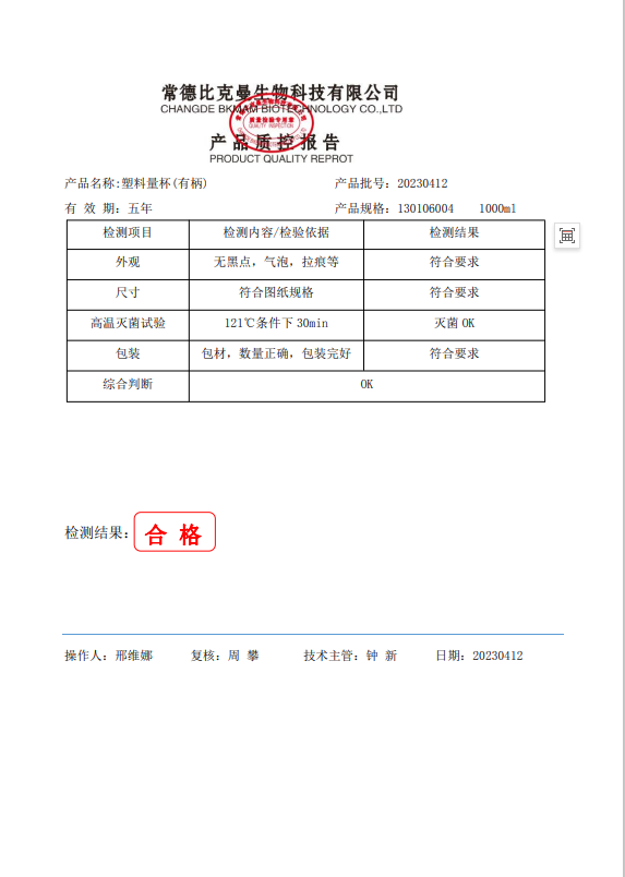 130106004 BKMAM 塑料量杯(有柄) 1000ml 20230412