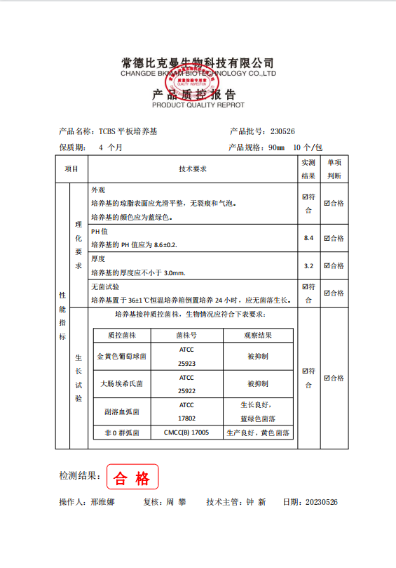 110704030 比克曼生物 TCBS瓊脂平板 (弧菌板) (二層包裝) 9cm 230526