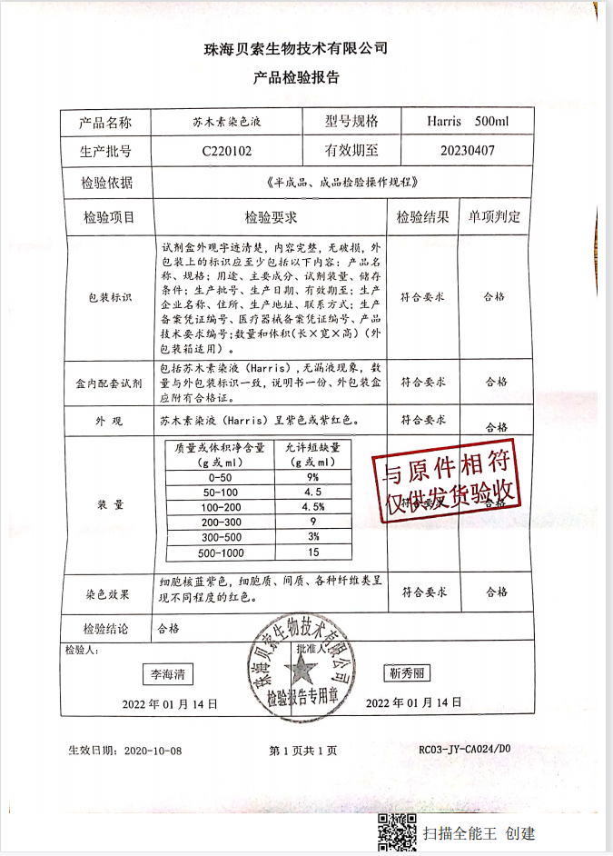 貝索 蘇木素染色液 Harris 500ml BA4097 C220102