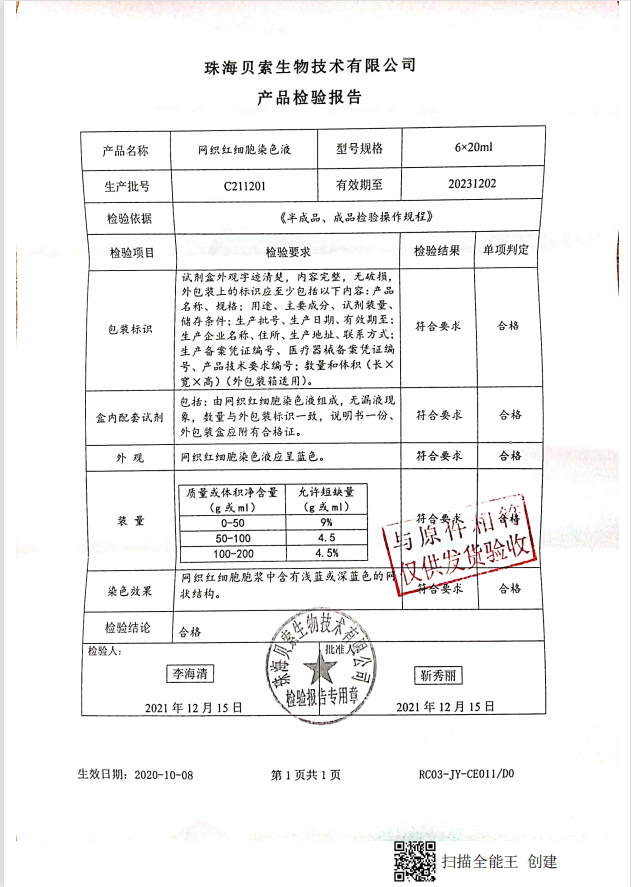 貝索 網(wǎng)織紅細(xì)胞染色液 6x20ml BA4004 C211201