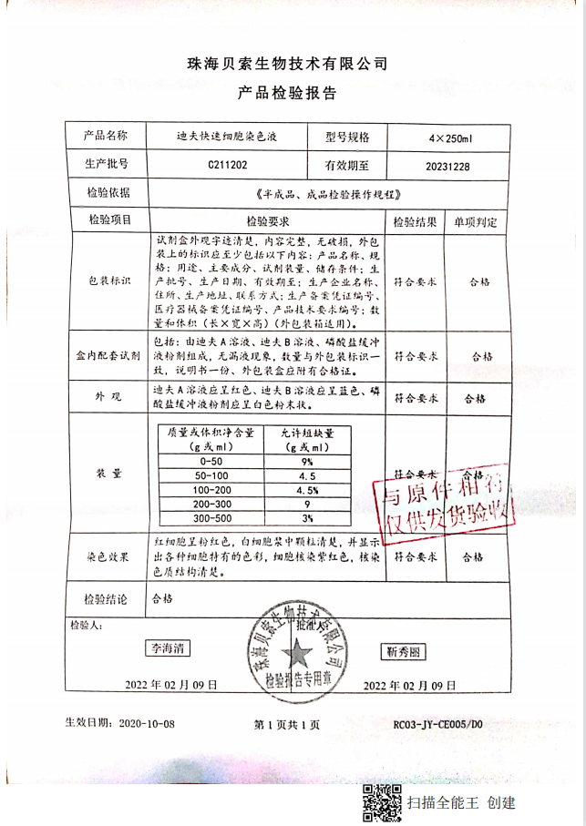 貝索 迪夫快速細(xì)胞染色液 250mlx4 BA4100 C211202