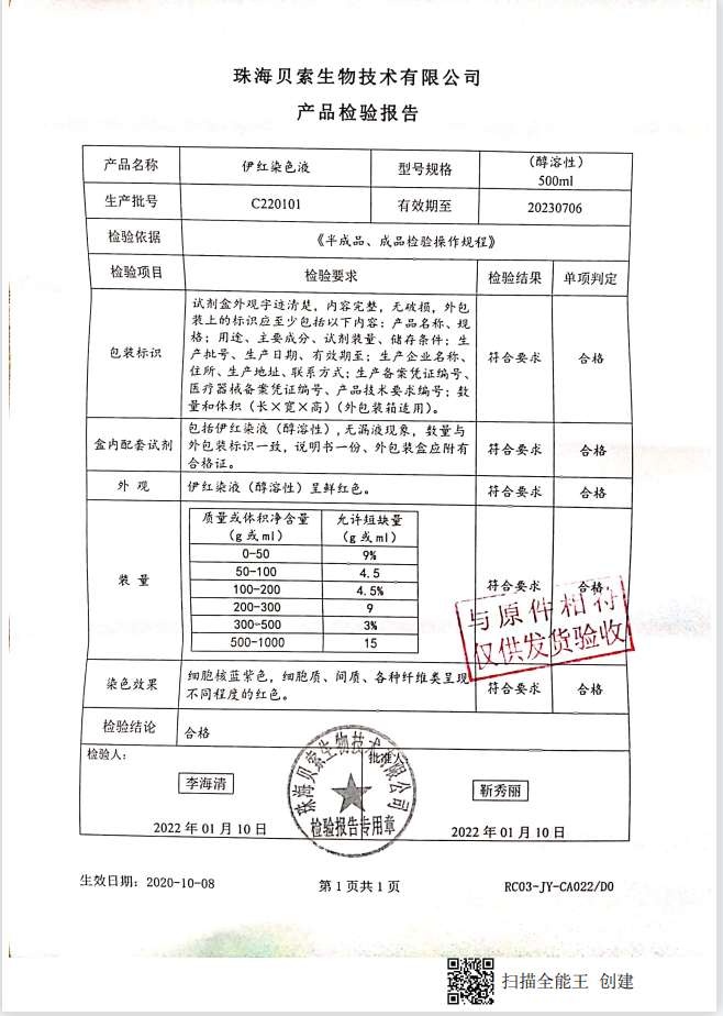 貝索 伊紅染液(醇溶性) 500ml BA4099 C220101