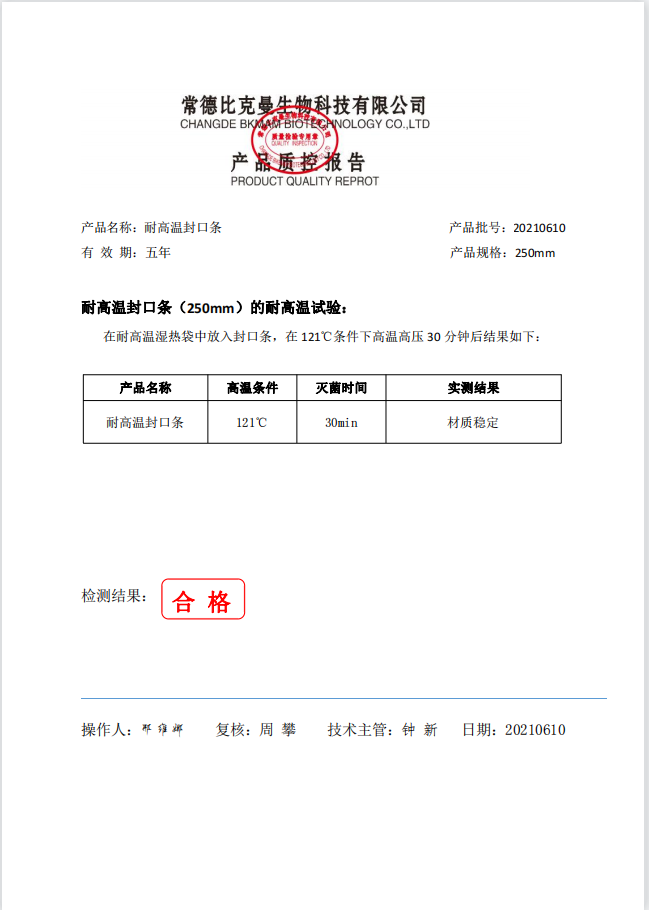 比克曼生物 耐高溫封口條250mm 50根包 B-SR250 20210610