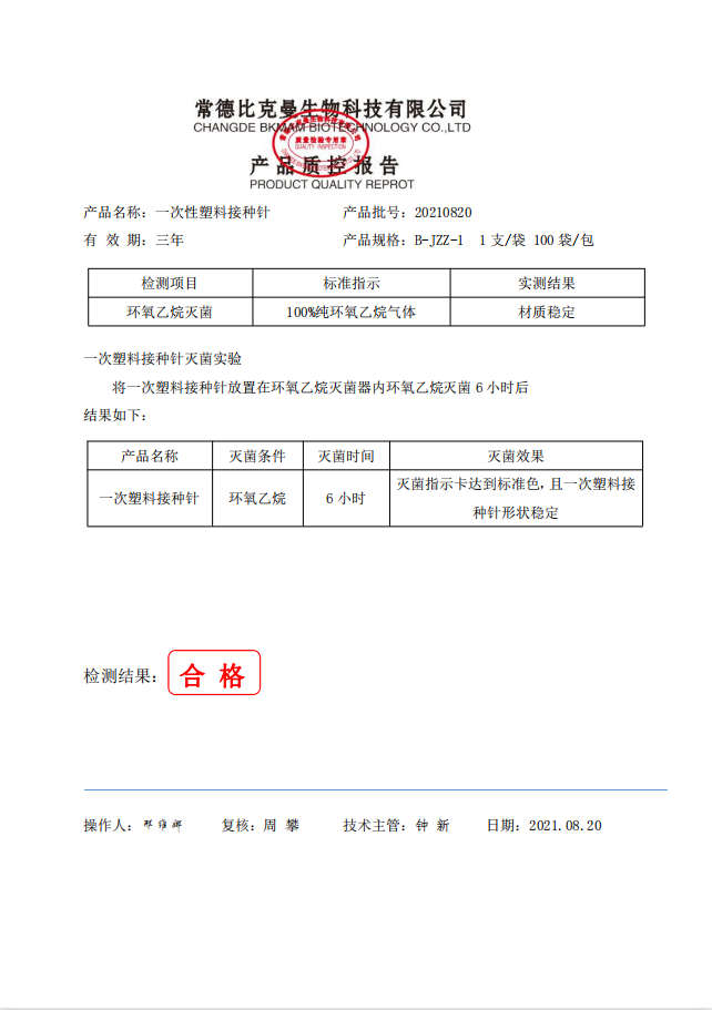 一次性塑料接種針 (獨立裝) 1支袋100袋包 B-JZZ-1 20210820