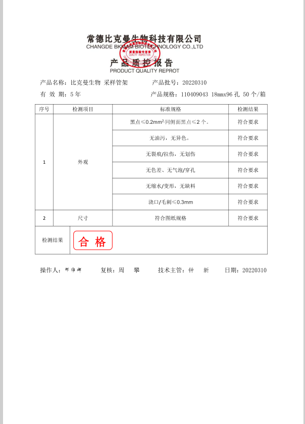 比克曼生物 采樣管架96孔 8mmx96孔 110409043 20220310